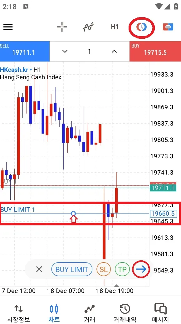 아래 단계를 통해 모바일 MT5에서 지정가 진입을 설정해보세요.