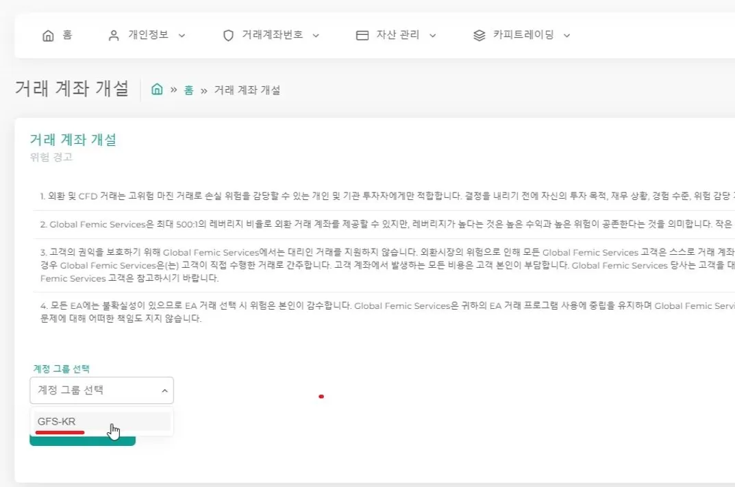 ● 계정 그룹을 GFS-KR로 선택후 [확인]