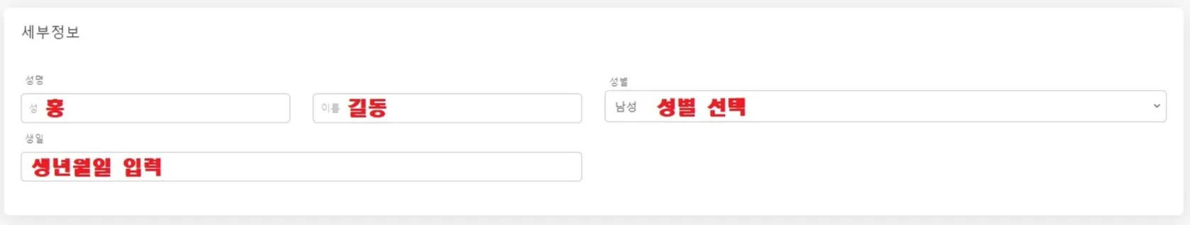 가이드 예시를 보며 필요정보를 입력합니다.