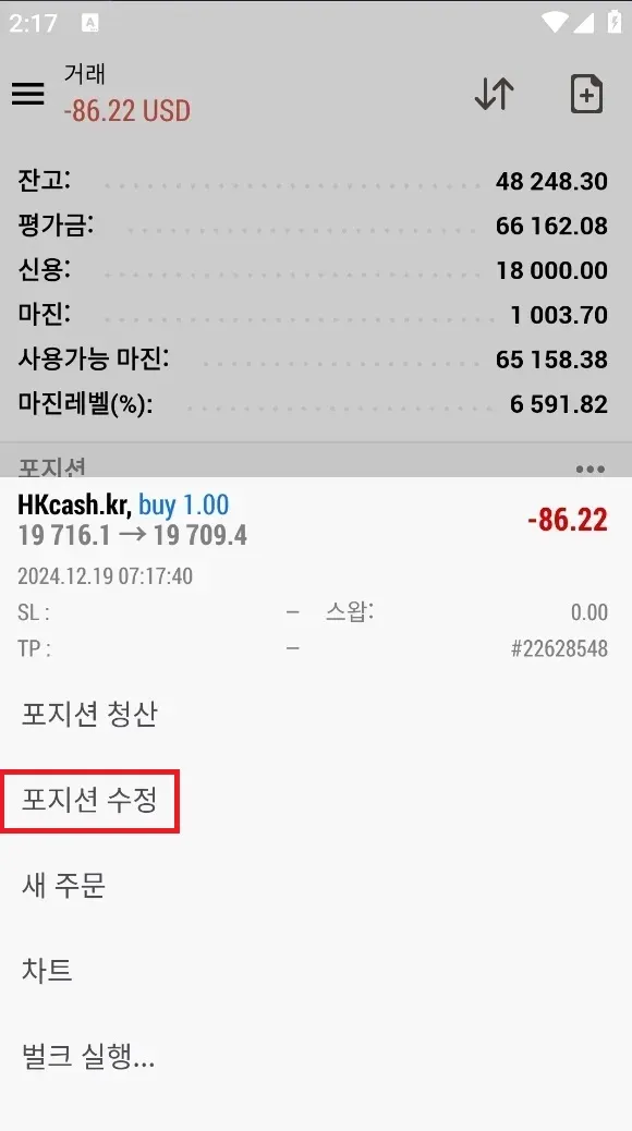 모바일 MT5에서 지정가 청산 방법 (손절/익절 예약)